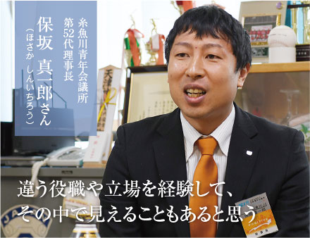 保坂さん たしかに出会いはJCの魅力のひとつだと思います。普段は自身の業種に関わりのある人しか会う機会はないですが、異業種の人と知り合うことで、違う目線でアドバイスをして、切磋琢磨できるのはありがたいです。隣の長野県は塩尻、松本、大町にもJCがあって、祝賀会で交流をしたり、どこかで会ったら声を掛けあったり。「こうなりたい、交流したい」と思って自分から行動しなければ変わりませんが、糸魚川だけで活動していれば井の中の蛙ですから。