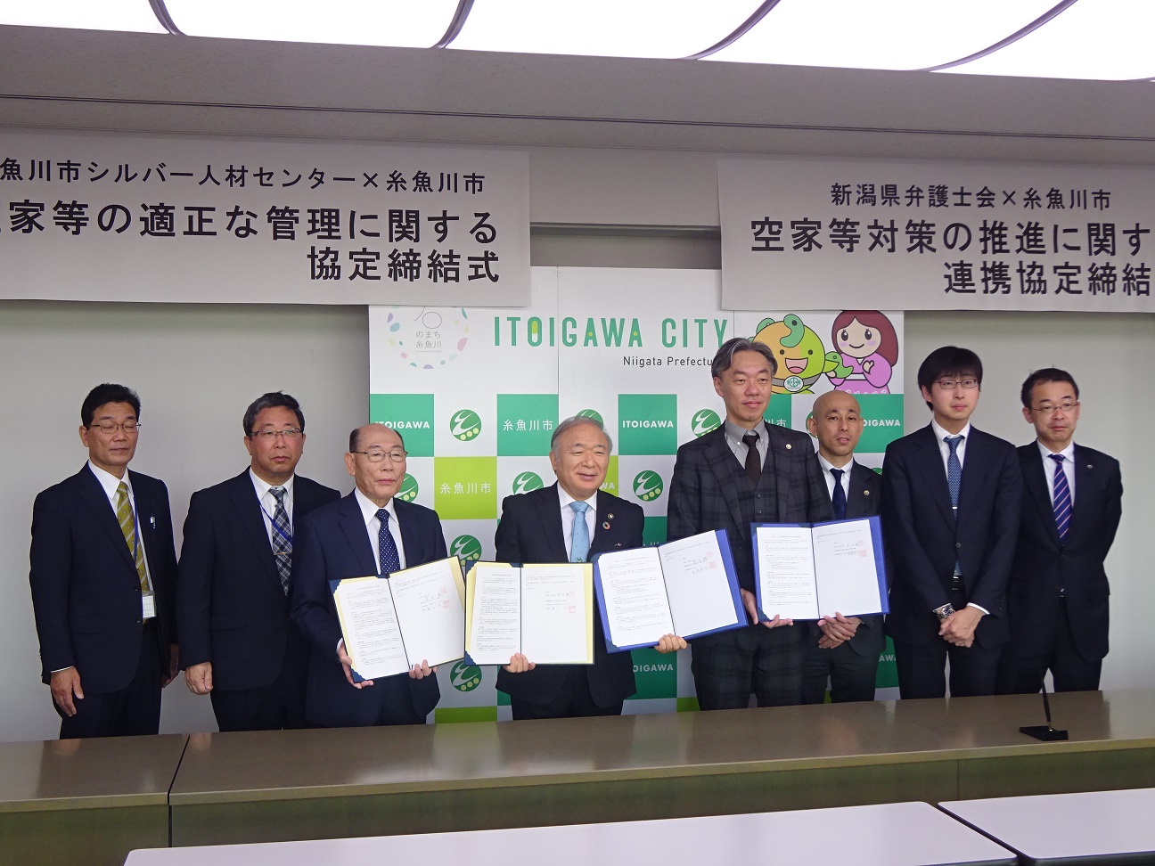 糸魚川市では、空き家対策等の推進、空き家等の適正な管理を促進するため、次の団体と協定を締結しました。